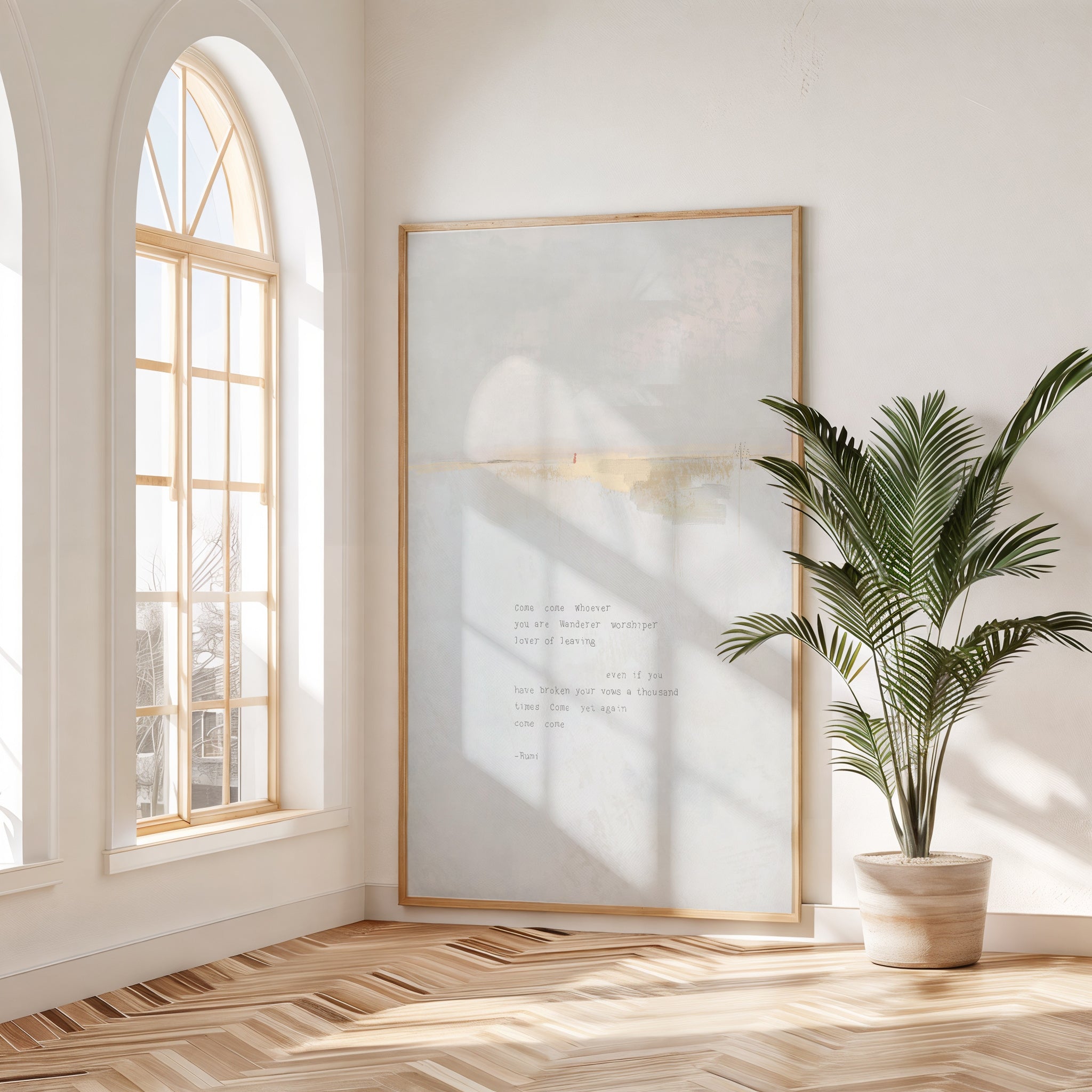 Soft lines, open space. This artwork invites quiet reflection but speaks volumes. This is Whispers of Rumi. It is the echo of the soul.