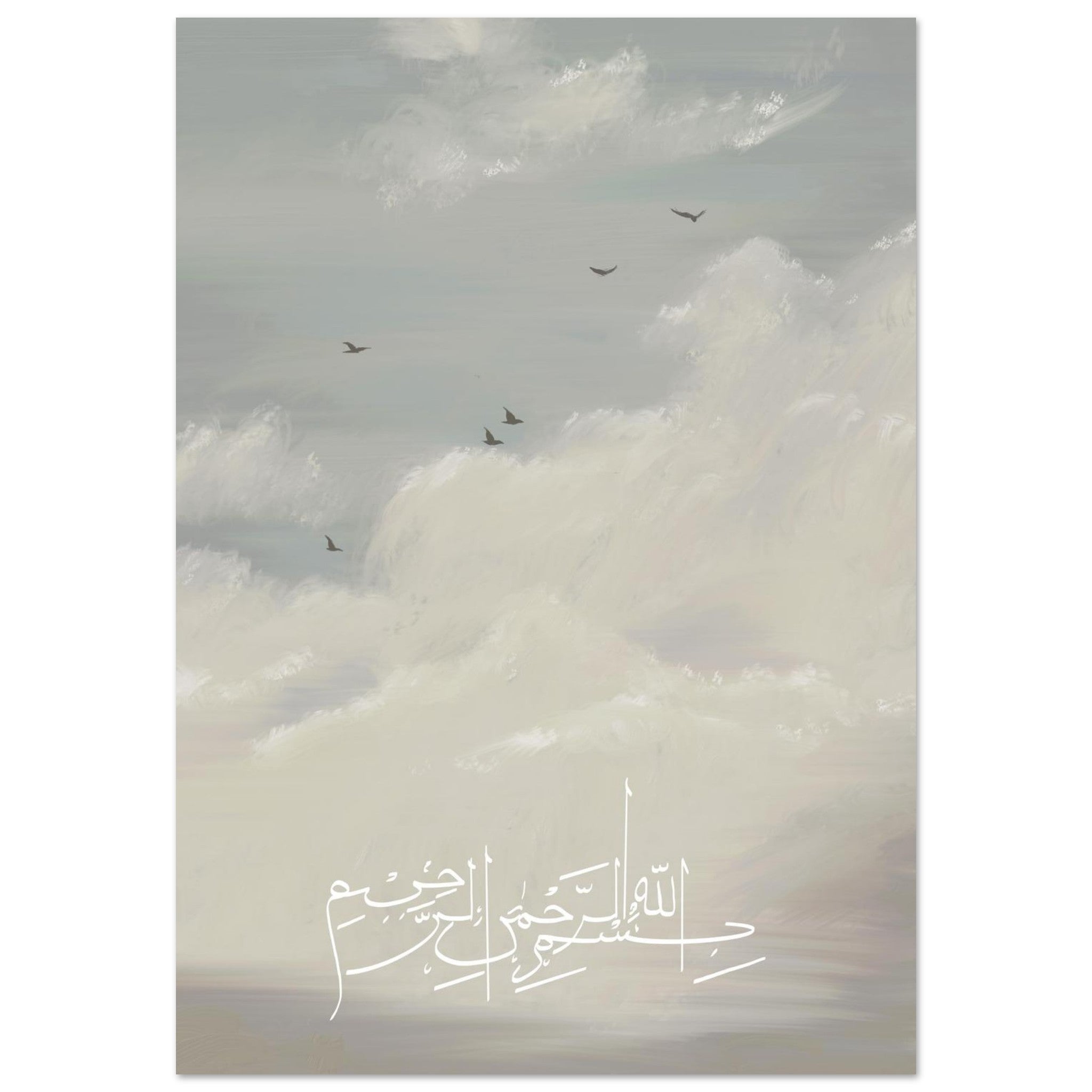 Anmutige Vögel gleiten über eine Leinwand aus sanft driftenden Wolken in diesem erlesenen, digital handgefertigten Kunstwerk. Es verkörpert Freiheit, göttliche Harmonie und die mühelose Schönheit der Schöpfung. Jeder Pinselstrich ist ein Ausdruck innerer Bewegung – eine stille Reise der Seele nach oben, wo der Himmel selbst zum Sinnbild für Vertrauen, Hingabe und spirituale Erhebung wird.