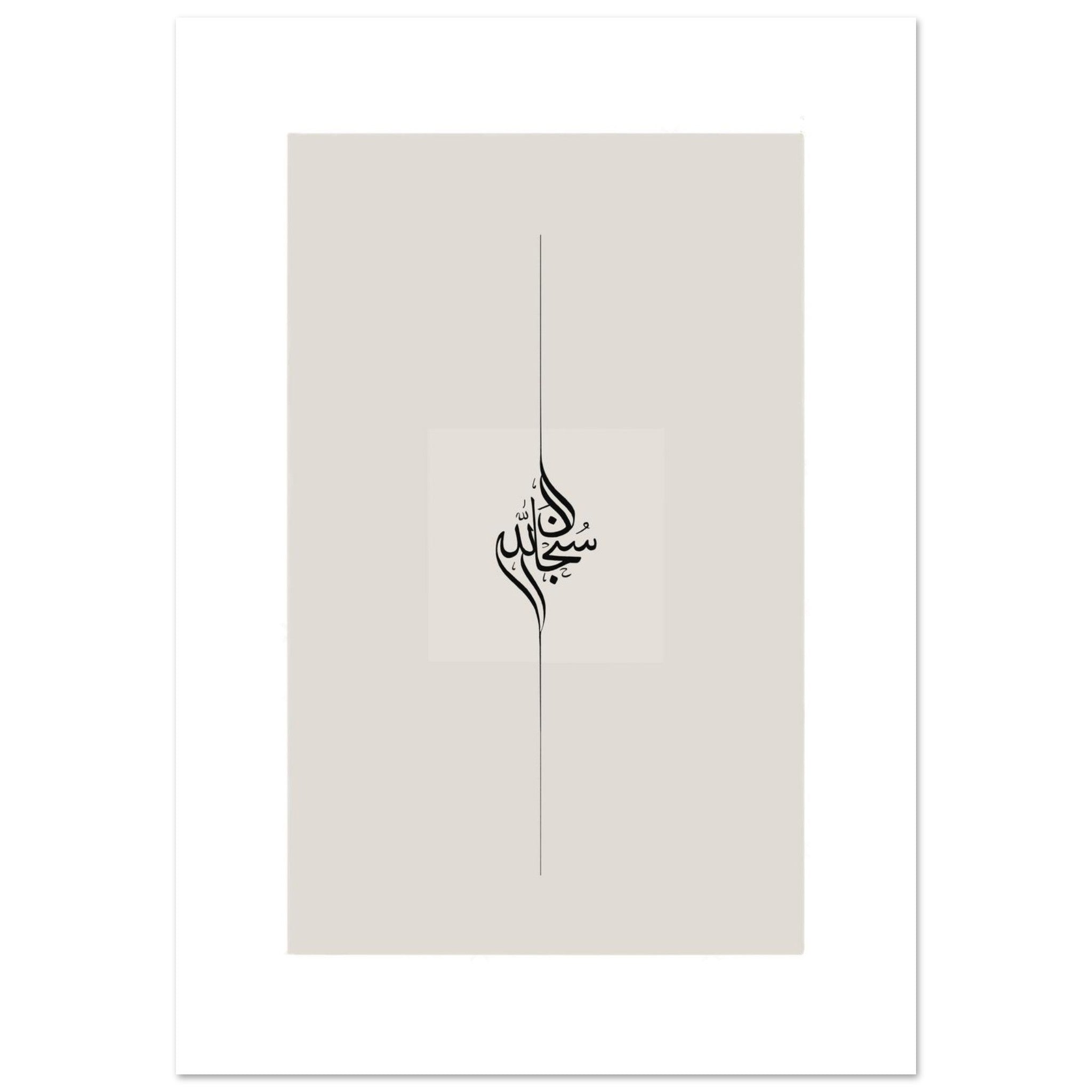 Bringen Sie einen Hauch von Eleganz in Ihren Raum mit unserem atemberaubenden, minimalistischen Poster mit der arabischen Kalligraphie von „Subhanallah“. Dieses wunderschön gestaltete Kunstwerk ist perfekt für alle, die Schlichtheit und kulturelles Dekor schätzen. Der sanfte beigefarbene Hintergrund unterstreicht die filigrane Kalligraphie und schafft eine ruhige und inspirierende Atmosphäre in Ihrem Zuhause oder Büro!